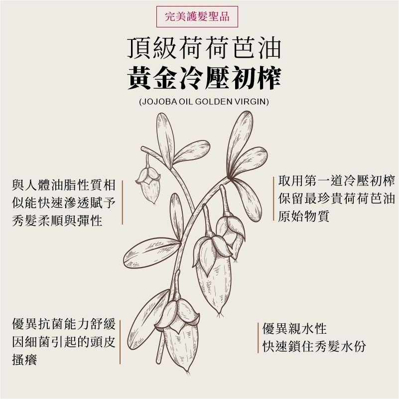 山茶花護髮素:天然荷荷芭油與山茶花油、核仁果油、羊毛脂,雙效保溼因子,深入髮絲滋養潤澤,賦予秀髮充盈水分,蕓薹精華防護靜電,優異梳理性,秀髮滑順不糾結。
